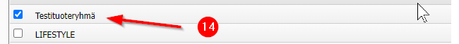 - ... ja sitten itse ryhmä(t) joihin tuote liitetään (14).